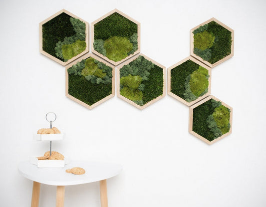 Honeycomb Tri Mix Moss Wall Art with LED Light 7pcs
